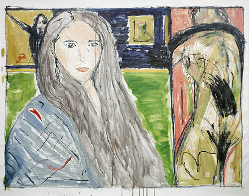 Elke Krystufek and her deamon Oil/acrylic on canvas 150 x200cm 2007 |