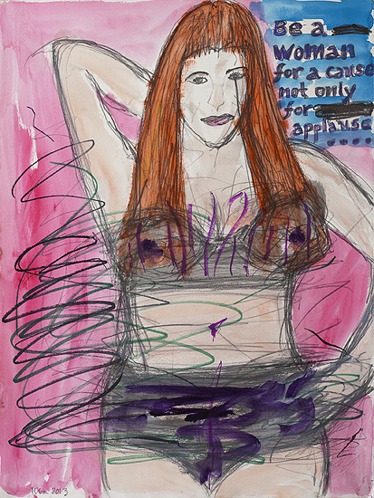 Woman for a cause Acrylic/gouache/ink on paper 77 x 57cm 2013/14 |