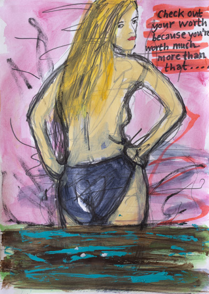 The Selfie Girl acrylic/ gouache/ ink 42 x 30 cm. |
